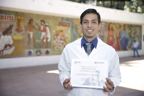 En el marco del XL Congreso Nacional de Ingeniería Biomédica 2017, celebrado en Monterrey, Nuevo León, y que reunió a cerca de dos mil 500 estudiantes, Eduardo Gutiérrez fue uno de los cinco finalistas en la Modalidad Licenciatura de este certamen, reconocido como el más importante a nivel nacional en la materia.