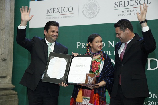 Ricardo Pablo Pedro, quien obtuvo el premio en la categoría “B” en el rubro de Logro Académico, habló a nombre de los galardonados. Se refirió a su origen oaxaqueño y las dificultades que tuvo para acoplarse a la vida urbana. «Al abandonar mi tierra, sin saber hablar español, mis padres me alentaron a estudiar y salir de pobre».