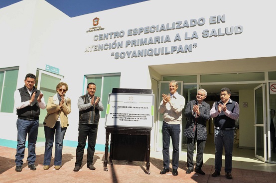 Acompañado por el Secretario de Salud, Gabriel O´Shea Cuevas, el Gobernador mexiquense entregó la ampliación y rehabilitación del Centro Especializado de Atención Primaria a la Salud (CEAPS) de Soyaniquilpan, que tuvo una inversión mayor a 50 millones de pesos.