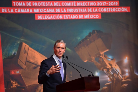 Alfredo Del Mazo tomó protesta al Comité Directivo 2017-2019 de la Cámara Mexicana de la Industria de la Construcción (CMIC), delegación Estado de México, con la presidencia de Mario Vallejo Valdés, donde reiteró su apoyo a los constructores mexiquenses con la continuidad a los convenios que el Gobierno del Estado de México ha firmado con este gremio.