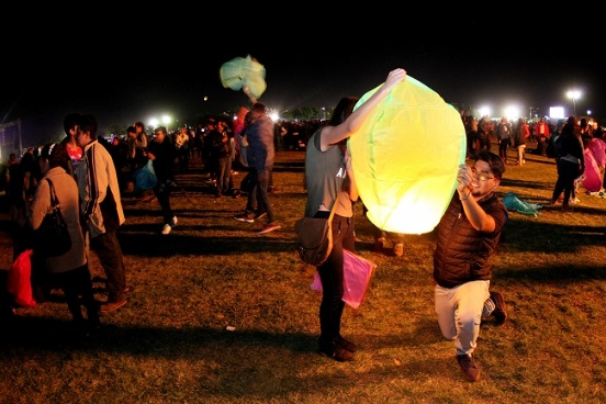 Niños, jovenes y adultos se congregaron desde la tarde en el Parque Metropolitano y en cuanto cayó la noche empezaron a sacar los globos aerostáticos de papel, los cuales fueron inventados por el aeronauta mexicano Joaquín de la Cantolla y Rico.