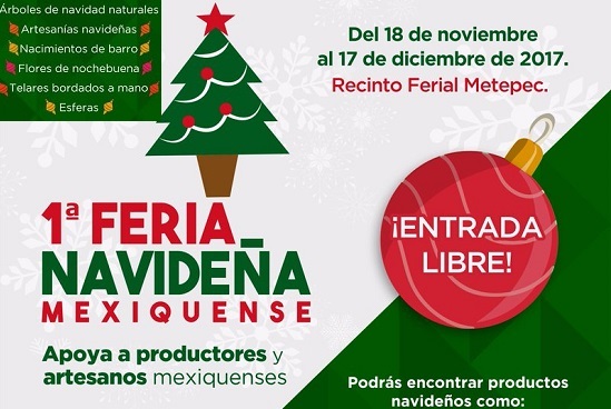 A partir de hoy y hasta el 18 de diciembre se llevará a cabo la primera Feria Navideña mexiquense, en el Recinto Ferial Metepec, en apoyo a productores y artesanos del Estado de México.