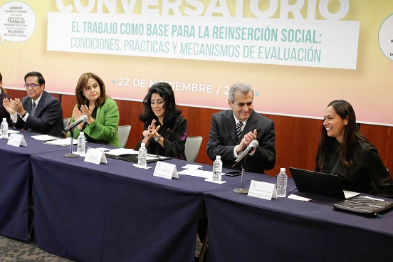 En el conversatorio se realizó la mesa de debate “Condiciones, prácticas y regulación del trabajo en prisión”, con la participación de representantes del Centro Nacional de Derechos Humanos, del Programa del Sistema Penitenciario y Reinserción Social de Documenta y de la Dirección General Adjunta de Desarrollo Penitenciario de la Comisión Nacional de Seguridad.