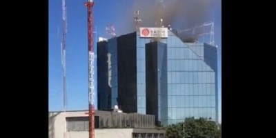 Bomberos laboran en incendio en Grupo Radiocentro
