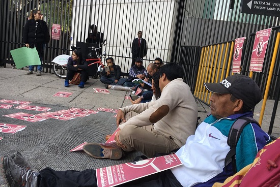 Alrededor de un centenar de manifestantes bloquean el acceso a la calle Madrid, esquina con Insurgentes, en la sede del Senado de la República.