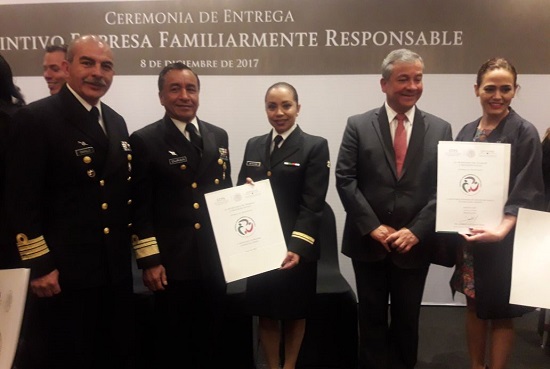 La Secretaría de Marina-Armada de México (Semar) recibió el distintivo Empresa Familiarmente Responsable, por implementar al interior de la institución buenas prácticas para fortalecer la conciliación entre el trabajo y la familia en beneficio del personal naval.