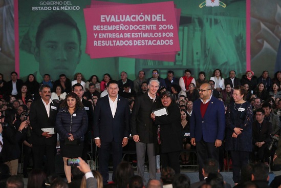 En la entrega de reconocimientos y estímulos económicos a los maestros que obtuvieron los mejores resultados en la Evaluación del Desempeño Docente 2016, Del Mazo Maza indicó que también el Estado de México es de los estados que mayor asistencia a las evaluaciones educativas ha tenido.