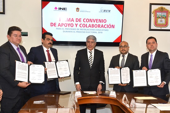 La firma del convenio fue realizada por el Vocal Ejecutivo de la Junta Local del Instituto Nacional Electoral (INE) en el Estado de México, Joaquín Rubio Sánchez, el Consejero Presidente del Instituto Electoral del Estado de México (IEEM), Pedro Zamudio Godínez, el titular de la Secretaría de Educación, Juan Jaffet Millán Márquez, y el Director General de los Servicios Educativos Integrados al Estado de México (SEIEM), Gerardo Monroy Serrano.