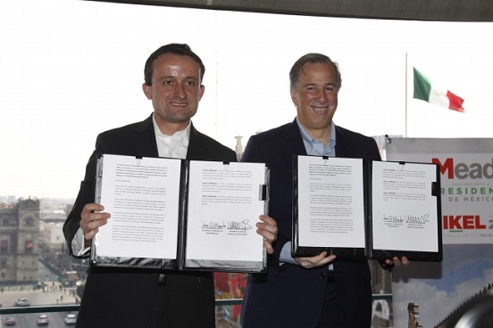 Los precandidatos del Partido Revolucionario Institucional (PRI) al gobierno de la República y a la Ciudad de México, José Antonio Meade y Mikel Arriola, respectivamente, firmaron el Pacto por la Transformación de la Gran Ciudad de México.