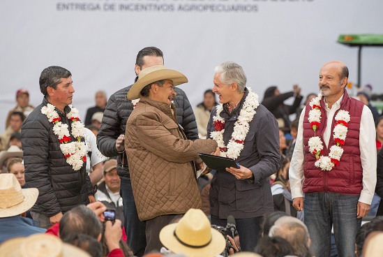 En la entrega de incentivos agropecuarios, que recibieron más de 3 mil 300 productores mexiquenses, el Jefe del Ejecutivo estatal destacó que este acuerdo, es una oportunidad para impulsar la economía de las familias de localidades rurales, pues tiene una tasa de interés del siete por ciento anual, para hombres, y 6.5 por ciento en los solicitados por mujeres.