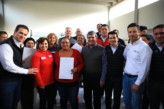 La secretaria de Desarrollo Agrario Territorial y Urbano (Sedatu), Rosario Robles Berlanga, entregó escrituras y títulos de propiedad a más de 400 familias de Nuevo León, con el que dan certeza jurídica y legitimidad de sus patrimonios.