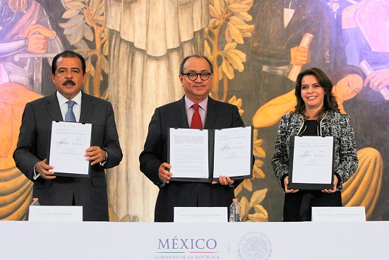 Los secretarios de Educación Pública y de Desarrollo Social, Otto Granados Roldán y Eviel Pérez Magaña, respectivamente, y la titular del Sistema Nacional DIF, Laura Barrera Fortout, firmaron hoy el acuerdo para que los niños y niñas inscritos en las estancias infantiles Sedesol-DIF acrediten el primer grado de preescolar, con el fin de abatir el rezago en ese nivel educativo.