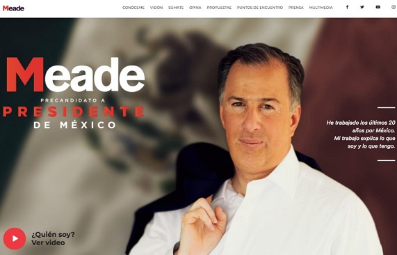 «Les comparto el sitio de nuestro precandidato a la #PresidenciaDeMéxico @JoseAMeadeK, donde podrás conocer más sobre él, opinar y sumarte al equipo, además de seguir muy de cerca todas sus actividades. Visita: http://meade18.com» en cuenta de Twitter, dijo el coordinador de campaña, Aurelio Nuño.