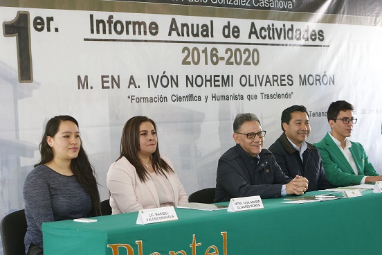Olivares Morón, quien rindió su primer informe de actividades, refirió que el Plantel cuenta con una matrícula de mil 619 estudiantes y una eficiencia terminal de 80 por ciento, mientras que el índice de transición del primero al segundo año es de 99 por ciento y el de reprobación es de tres por ciento, considerado como el menor entre los 10 planteles de Escuela Preparatoria de la UAEM.