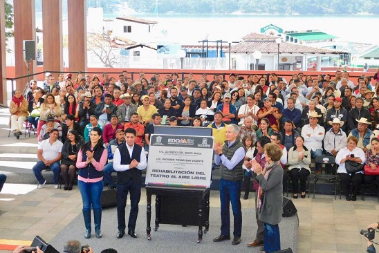 El gobernador del Estado de México, Alfredo Del Mazo Maza, entregó a autoridades y pobladores el Teatro al Aire Libre de Valle de Bravo, tras los trabajos de rehabilitación del lugar, con lo que se amplían los espacios culturales y de recreación en la localidad.