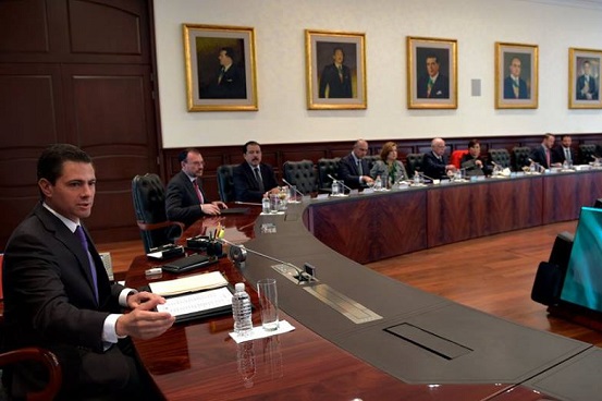 El presidente Enrique Peña Nieto sostuvo este lunes una reunión con los integrantes de su gabinete, con quienes evaluó el avance en el cumplimiento de los compromisos presidenciales.
