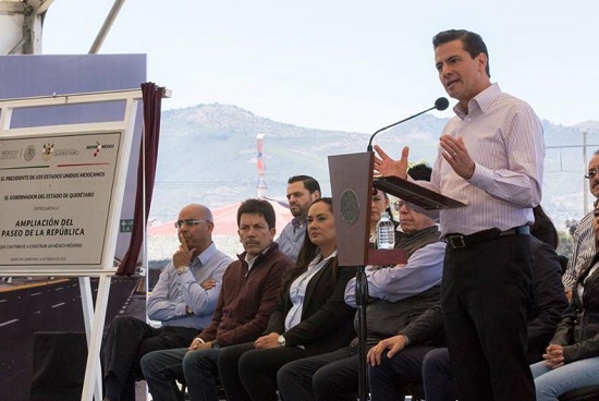 Durante la inauguración de la ampliación de la Avenida Paseo de la República, en Querétaro, expuso que en cada entidad se están entregando los compromisos adquiridos ante notario público; “estoy entregando las obras a las que me comprometí”, como la creación de nuevas autopistas y carreteras que “permiten proyectar a un México moderno y en crecimiento”.