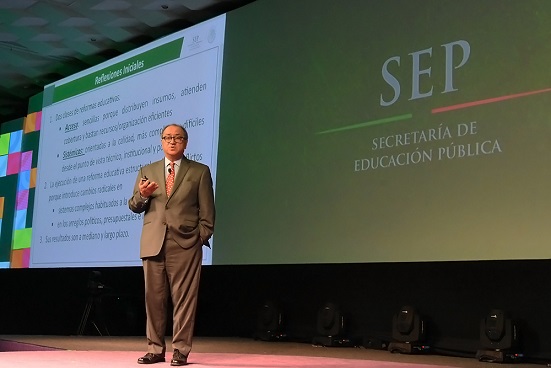 Explicó que la Reforma Educativa, la más importante desde los años 60’s, es compleja y difícil, y comentó que busca la calidad en la educación, pero primero fue necesario recuperar la rectoría del Estado en la materia, y pasar de un sistema clientelar, discrecional y corporativo, a uno basado en el mérito y esfuerzo de los maestros, en los sistemas de reclutamiento y promoción.