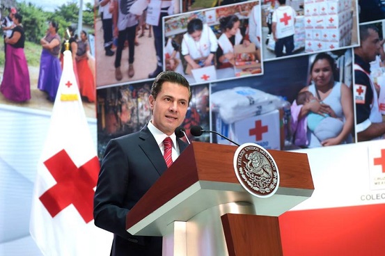 El presidente Enrique Peña Nieto reconoció la labor de la Cruz Roja Mexicana, durante “episodios que nos pusieron a prueba como país y en los que el acompañamiento de esta institución fue invaluable”, en situaciones adversas de la naturaleza o de la vida diaria.