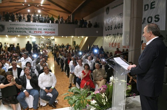 El candidato de la coalición Todos por México a la Presidencia de la República, José Antonio Meade Kuribreña, participó esta noche en la conmemoración del Día del Agrónomo, donde ratificó su compromiso de apoyar al campo mexicano y a sus productores.