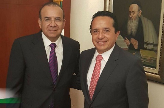 En su cuenta de Twitter, el funcionario federal informó que recibió en la sede de la dependencia al mandatario estatal, para dar seguimiento a los acuerdos de gobernabilidad, seguridad, derechos humanos, entre otros aspectos relacionados con Quintana Roo.