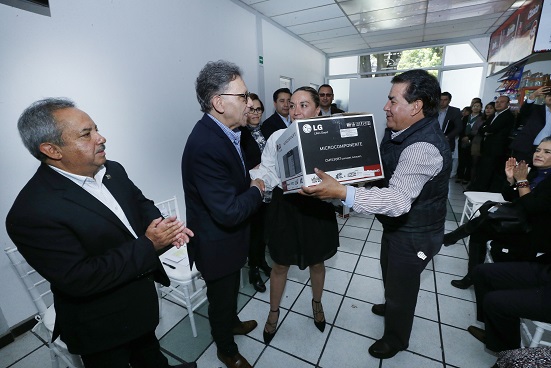 El rector de la Universidad Autónoma del Estado de México, Alfredo Barrera Baca, inauguró la remodelación de la cafetería del Plantel “Lic. Adolfo López Mateos” de la Escuela Preparatoria y entregó 20 equipos de cómputo para la sala de auto acceso, 12 proyectores para aulas, 300 sillas y 10 mini componentes de sonido.