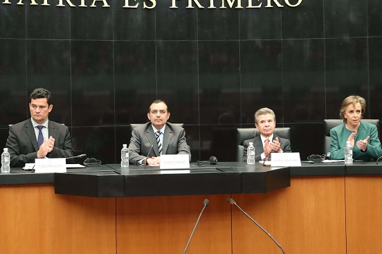 A invitación del presidente del Senado de la República, Ernesto Cordero Arroyo, y en coordinación con la asociación “Mexicanos contra la Corrupción y la Impunidad”, así como las Comisiones de Puntos Constitucionales y de Justicia, Sergio Moro impartió la conferencia magistral “Nuevos paradigmas de la procuración de justicia. La experiencia brasileña”.