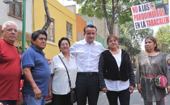 Respecto a lo ocurrido en la colonia Tabacalera, explicó que la empresa de los parquímetros llegó una noche apoyada por 300 policías antimotines para colocar 43 aparatos, pero ante la oposición de los vecinos, que valientemente se organizaron para impedirlo, sólo se colocaron unos cuantos.