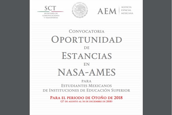 La Agencia Espacial Mexicana (AEM) lanzó una convocatoria para que estudiantes mexicanos de licenciatura o posgrado tengan la oportunidad de realizar estancias inmersivas de investigación en el Ames Research Center de la NASA, durante el otoño de 2018.