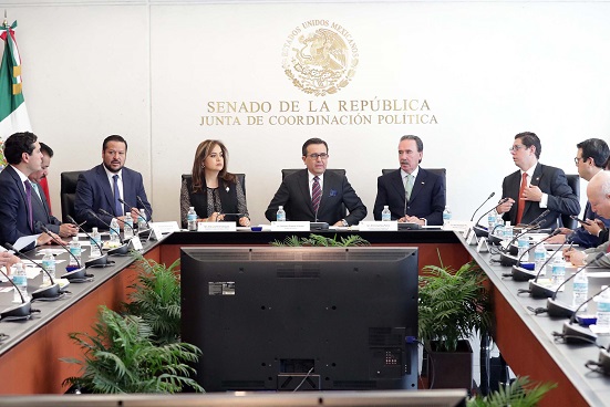 La Junta de Coordinación Política de la Cámara de Senadores se reunió hoy con el secretario de Economía, Ildefonso Guajardo, a fin de conocer la evolución y estado que guardan las negociaciones del Tratado de Libre Comercio de América del Norte.
