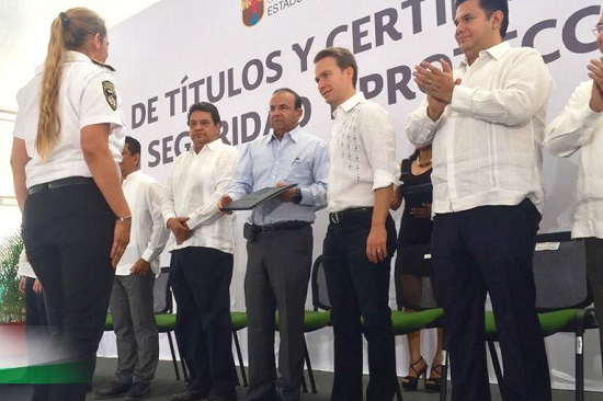 Al entregar Títulos y Certificados de la Licenciatura en Seguridad y Protección Ciudadana, así como vehículos que fortalecerán la labor de los cuerpos policiacos, entre ellas unidades de Atención de la Alerta de Violencia de Género, el secretario Navarrete Prida subrayó que la fuerza de México radica en que “somos una República federal sólida y fuerte, gracias a sus corporaciones”.