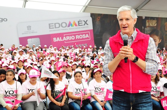 Para tener familias mexiquenses fuertes se requiere brindar de mayor apoyo y oportunidades de desarrollo a las mujeres, quienes representan el pilar y la unidad familiar, por ello la creación del programa Salario rosa, afirmó el Gobernador Alfredo Del Mazo Maza.