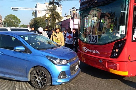 Este viernes se registró el choque de un autobús de la Línea 7 del Metrobús, que va de Indios Verdes a Campo Marte, y un auto compacto, sin que resultaran personas lesionadas.