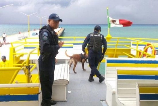 La Comisión Nacional de Seguridad informó hoy que la Policía Federal a través de la División de Fuerzas Federales, con apoyo de binomios caninos reforzó las tareas de seguridad en las terminales portuarias de Playa del Carmen y la Isla de Cozumel.