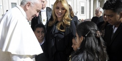 Angélica Rivera y niños del Hospital Infantil visitan al Papa Francisco