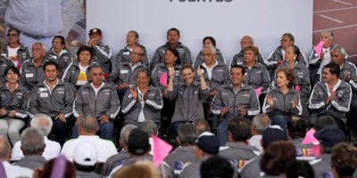Entrega Fernanda Castillo de Del Mazo, uniformes a 250 adultos mayores que participarán en los XXVII Juegos Nacionales Deportivos y Culturales