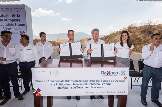El titular de la SCT también destacó el convenio firmado con el ejecutivo estatal, para que Oaxaca se sume a la Política Federal Inmobiliaria en Materia de Telecomunicaciones, con la intención de que sigan disminuyendo los precios de los servicios de telefonía celular e internet.