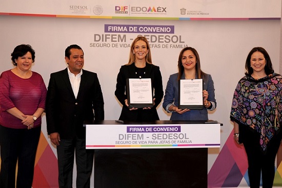 El Sistema para el Desarrollo Integral de la Familia del Estado de México (DIFEM) y la Delegación de la Secretaría de Desarrollo Social (Sedesol) en la entidad, firmaron un convenio de colaboración para realizar estrategias coordinadas de promoción, capacitación, afiliación, accesibilidad e incorporación al programa Seguro de vida para jefas de familia.