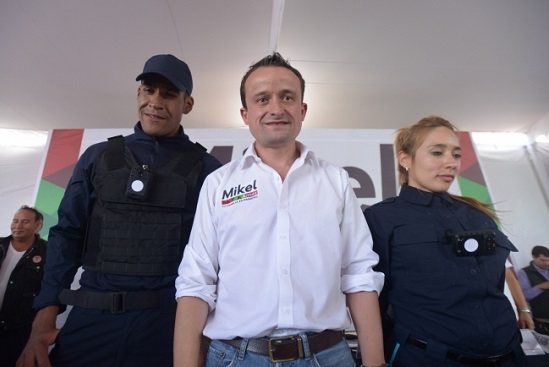 El candidato del Partido Revolucionario Institucional (PRI) a la Jefatura de Gobierno de la Ciudad de México, Mikel Arriola, presentó el modelo de cámaras y uniformes que usarán los policías en caso de que gane la elección, con lo cual se frenarán los abusos que se cometen contra los ciudadanos.
