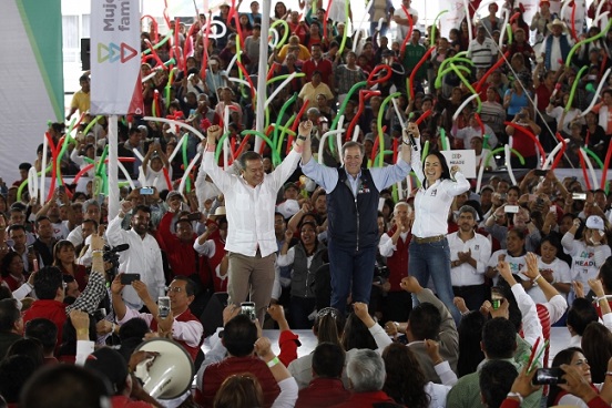 Miles de mexiquenses respaldaron la candidatura presidencial de Meade con aplausos, gritos, matracas, globos de colores y banderas, las cuales agitaban de un lado al otro, mientras lanzaban consignas donde expresaban fuerte y claro su apoyo a José Antonio Meade.