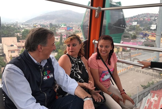 En el marco de su gira de campaña por el municipio de Ecatepec, Estado de México, el candidato de la coalición Todos por México, José Antonio Meade, viajó este sábado en el mexicable.