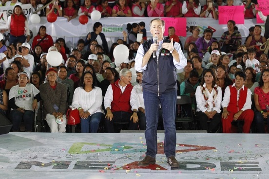 Tecámac, Méx.- El candidato presidencial de coalición Todos por México, José Antonio Meade, aseguró que su proyecto ganará la elección del 1 de julio, porque en su propuesta están primero las mujeres, quienes tendrán entre otras cosas, crédito a la palabra y becas para sus hijos para ser un país de preparatorias y con acceso a la educación superior.