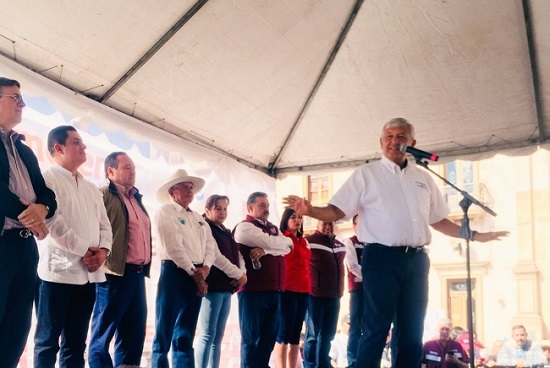 En el Jardín Principal del Centro de esta localidad, López Obrador resumió estas acciones con la frase “becarios sí, sicarios no”.