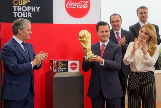 Luego de presentar la Copa del Mundo, y ser el único que pudo tocar el trofeo, el jefe del Ejecutivo Federal destacó que cerca de que esta justa deportiva está por cumplir 100 años, es el deporte que tiene el mayor número de aficionados en el mundo, lo que le convierte en “el deporte que auténticamente une al mundo”.