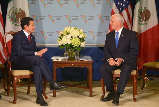 El presidente Enrique Peña Nieto se reunió esta mañana con el vicepresidente de Estados Unidos, Mike Pence, en la marco de la VIII Cumbre de las Américas.