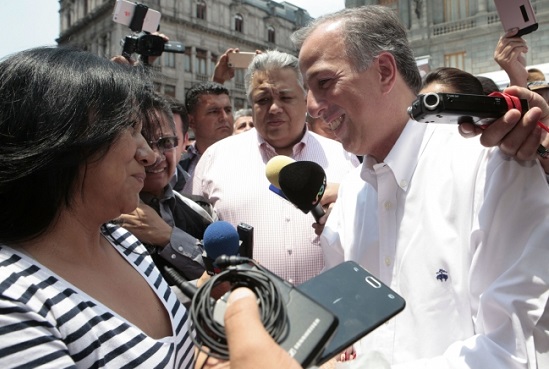 Antes de ingresar a este sitio, tuvo oportunidad de saludar a gente que se le acercó, en particular a una empleada bancaria, quien le sugirió resaltar el tema de pensiones en sus propuestas de gobierno.