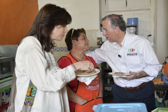 El candidato de la coalición Todos por México, José Antonio Meade, hizo una pausa en su gira proselitista por Coahuila, al visitar el tradicional restaurante “La Esquina”, ubicado en el centro del municipio de Arteaga, donde comió una gordita de frijol, antojo característico de la región.