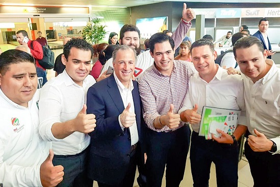 El aspirante presidencial del Partido Revolucionario Institucional (PRI) fue recibido en la terminal aérea por el dirigente de ese instituto político en esa entidad, Pedro Pablo Treviño.