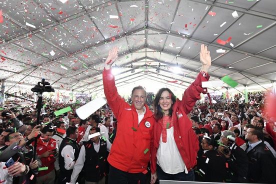 José Antonio Meade aceptó que ésta es no es una elección cualquiera, porque está en juego el futuro del país y que “la patria nos convoca de nuevo”. Se dijo orgulloso del priismo que vibra, que pone el ejemplo y trabaja día y noche para alcanzar la victoria. “El PRI está de pie”, aseguró.
