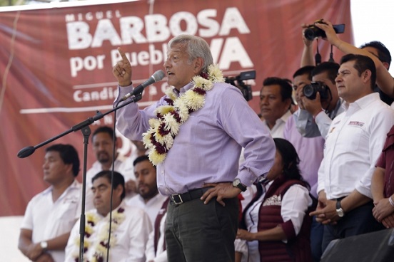 Acompañado por el candidato a gobernador de Juntos Haremos Historia en el estado, Miguel Barbosa Huerta, también reiteró que el objetivo del movimiento que encabeza es terminar con la corrupción.